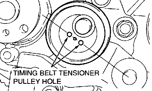 NOTE: When replacing the timing belt tensioner adjuster with new parts, the timing belt tensioner adjuster is set with a pin.