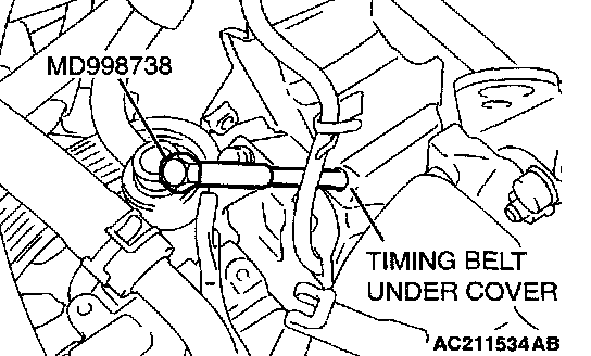 3. Screw in the special tool MD998738 until it comes in contact with the timing belt tensioner arm.