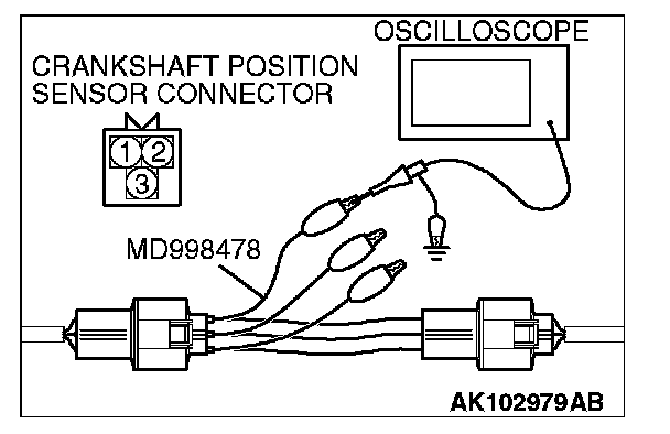 3. Disconnect the crankshaft position sensor connector, and connect the test harness special tool (MD998478) in between.