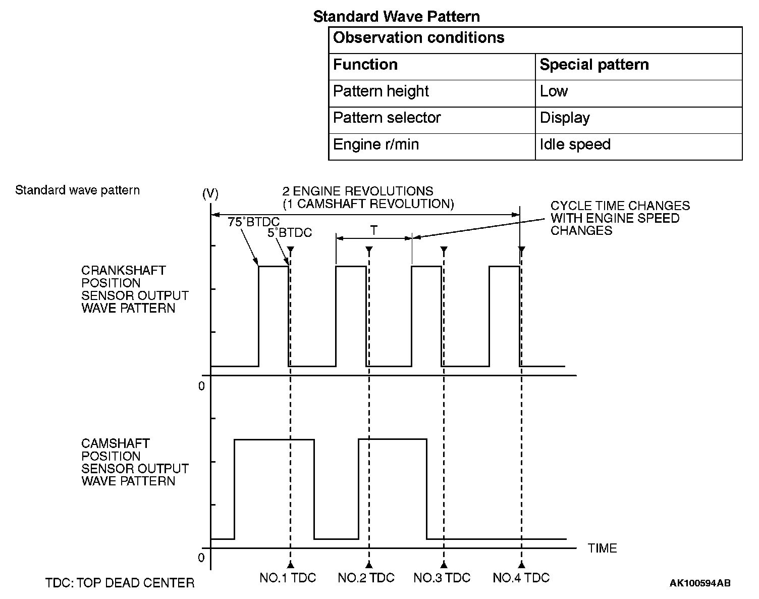 - Rectangular wave pattern is output even when the engine is not started.