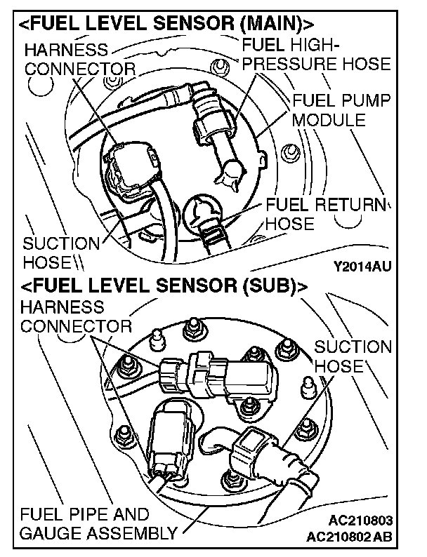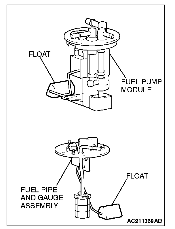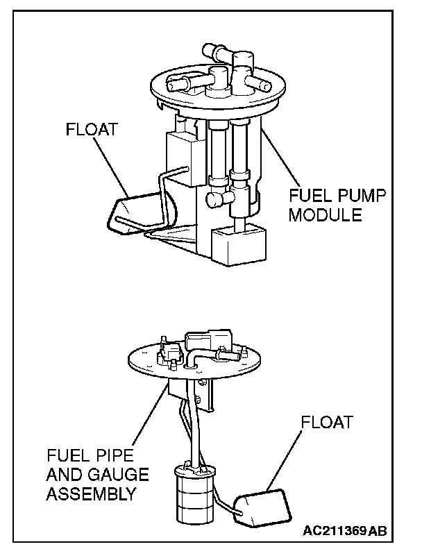 CAUTION: When withdrawing the fuel pump module or fuel pipe and gauge assembly from the fuel tank, be careful not damage the sensor unit and the float.