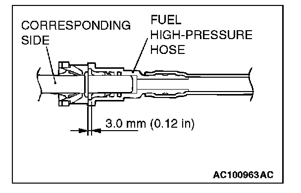 CAUTION: Snap the fuel high-pressure hose one-touch joint into place, then pull back slightly on the hose to assure it is secure. However, the connection should have a play of approximately 3.0 mm (0.12 inch).