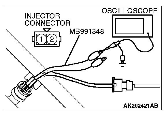 2. Connect the oscilloscope probe to injector connector terminal No. 2.