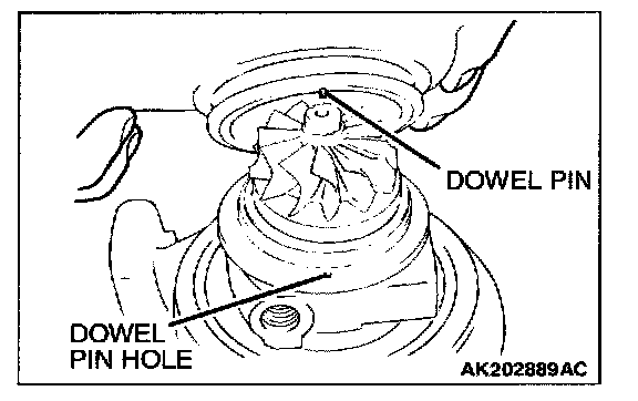 Assemble the set of compressor cover and cartridge assembly with the turbine housing while aligning the dowel pin with its hole.