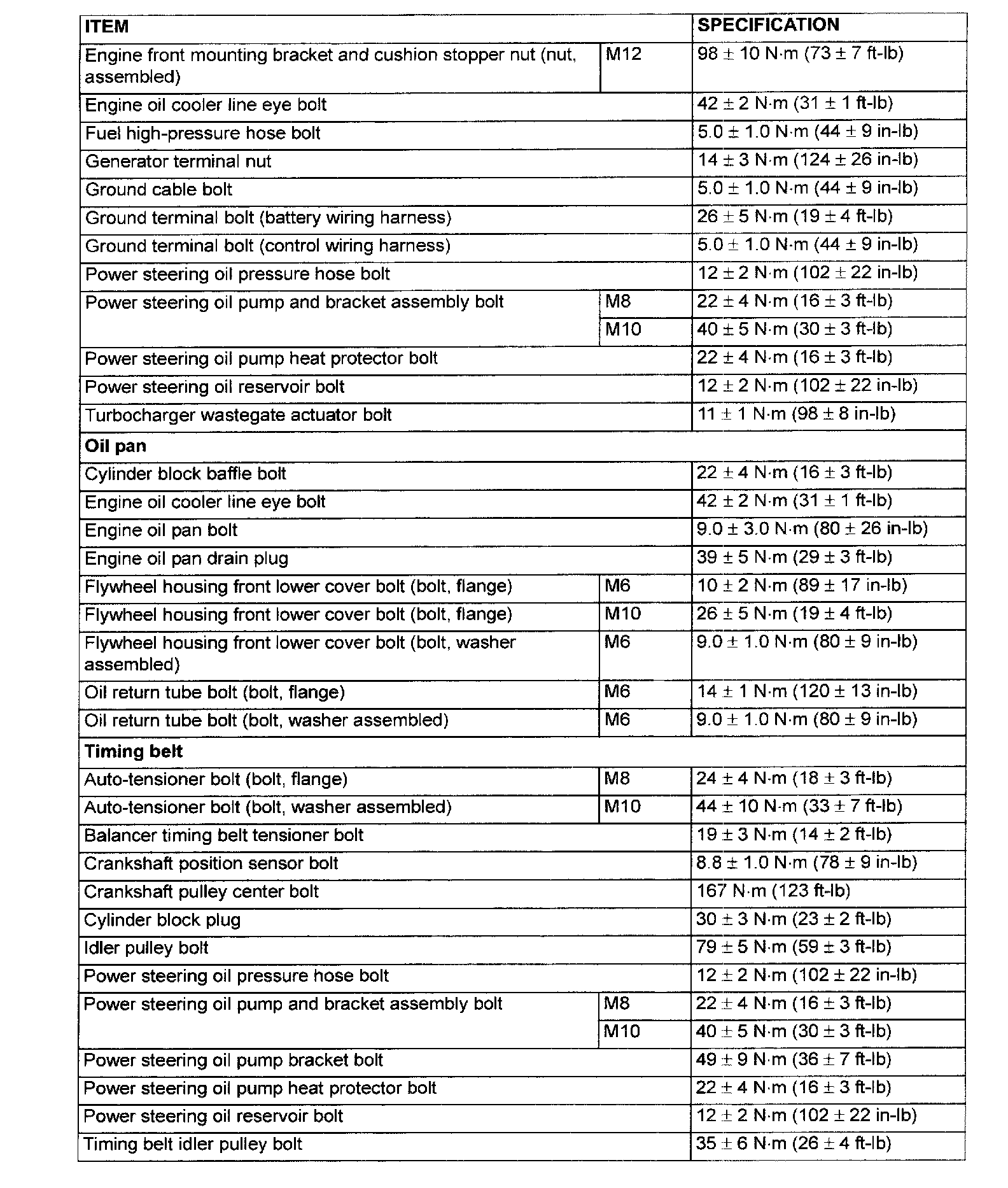 FASTENER TIGHTENING SPECIFICATIONS