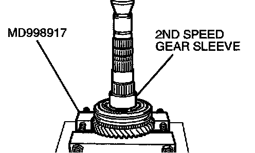 1. Using special tool MD998917, support the 2nd speed gear, and then set them on the press.