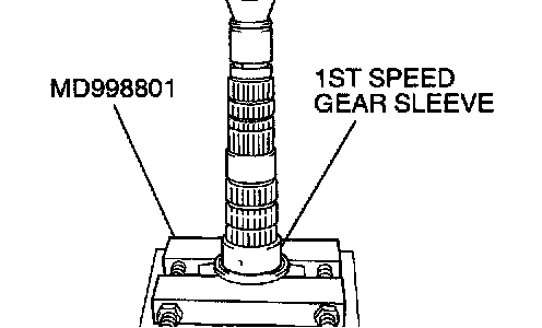 1. Using special tool MD998801, support the 1st speed gear sleeve, and then set them on the press.