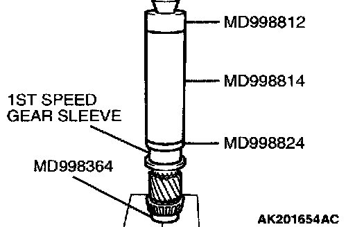 2. Using special tools MD998812, MD998814, MD998824 and MD998364, press install the 1st speed gear sleeve with the press.