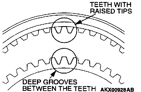 3. Check that the gear inside diameter and front and rear surfaces are not damaged or worn.