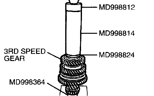 2. Using special tools MD998812, MD998814, MD998824 and MD998364, press install the 3rd speed gear onto the output shaft.