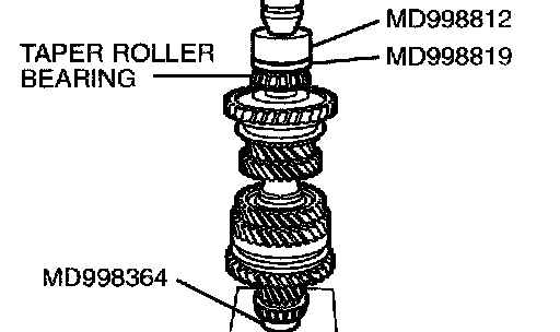 Using special tools MD998812, MD998819 and MD998364, press install the taper roller bearing.