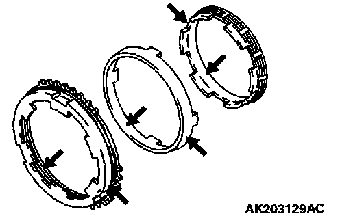 2. Check that the synchronizer cone surfaces are not roughened, damaged or worn.