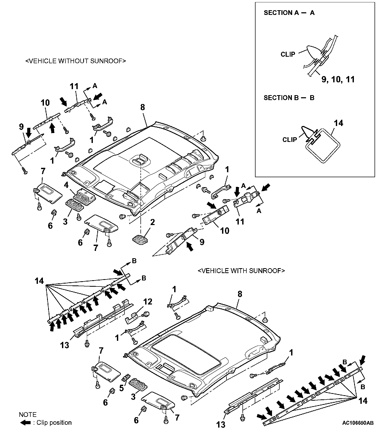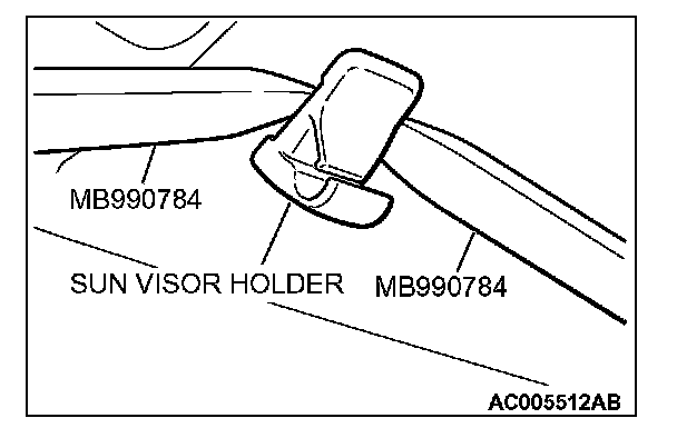 Insert the special tool into sides claws of the sun visor holder through the both sides of the sun visor holder to remove the hinges.