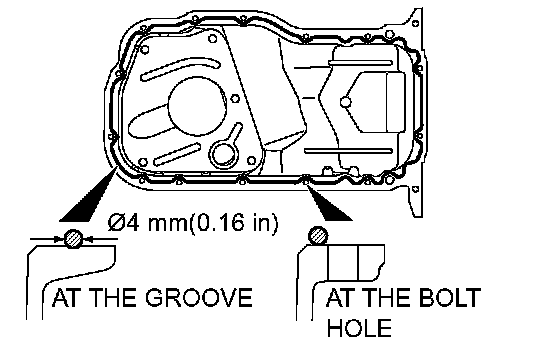 2. Apply sealant on the mounting surface of upper oil pan without any gap as indicated in the figure, and install oil pan on cylinder block.