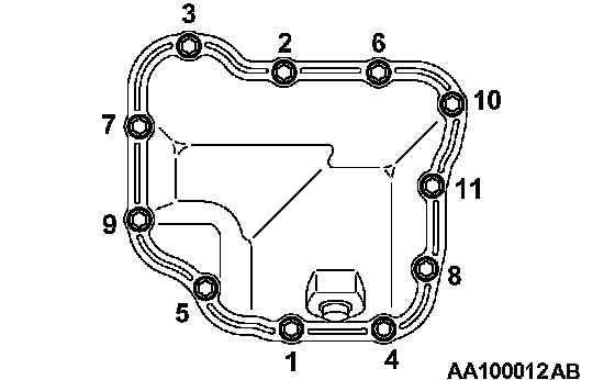 3. According to the sequence specified in the figure, tighten mounting bolts of lower oil pan to the specified torque.