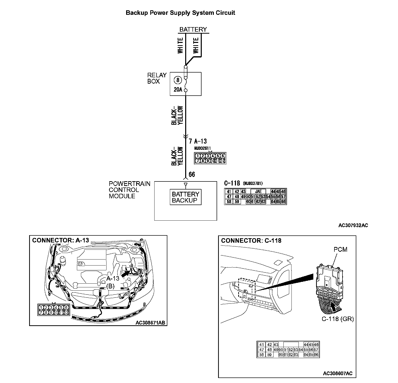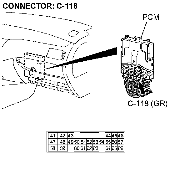 STEP 4. Check the harness for open circuit between PCM connector C-118 terminal 66 and battery.