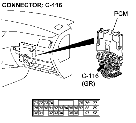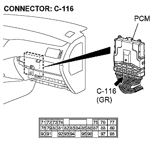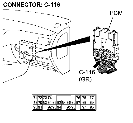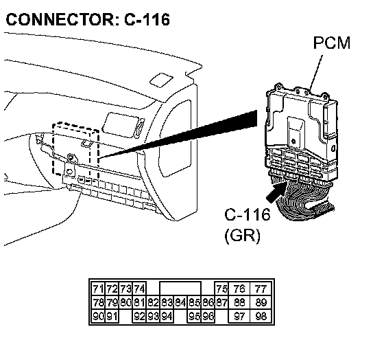 STEP 4. Check PCM connector C-116 for loose, corroded or damaged terminals, or terminals pushed back in the connector.