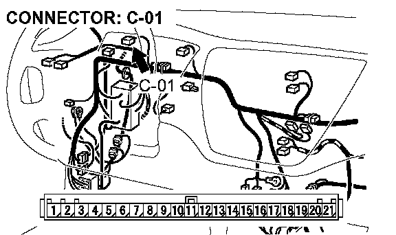 STEP 6. Check the harness for open circuit, short circuit to ground or damage between combination meter connector C-01 terminal 12 and PCM connector C-116 terminal 80.