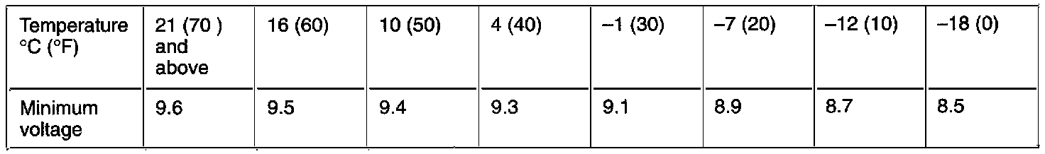 4. Compare the measured value with the minimum voltage. (See LOAD TEST CHART.)