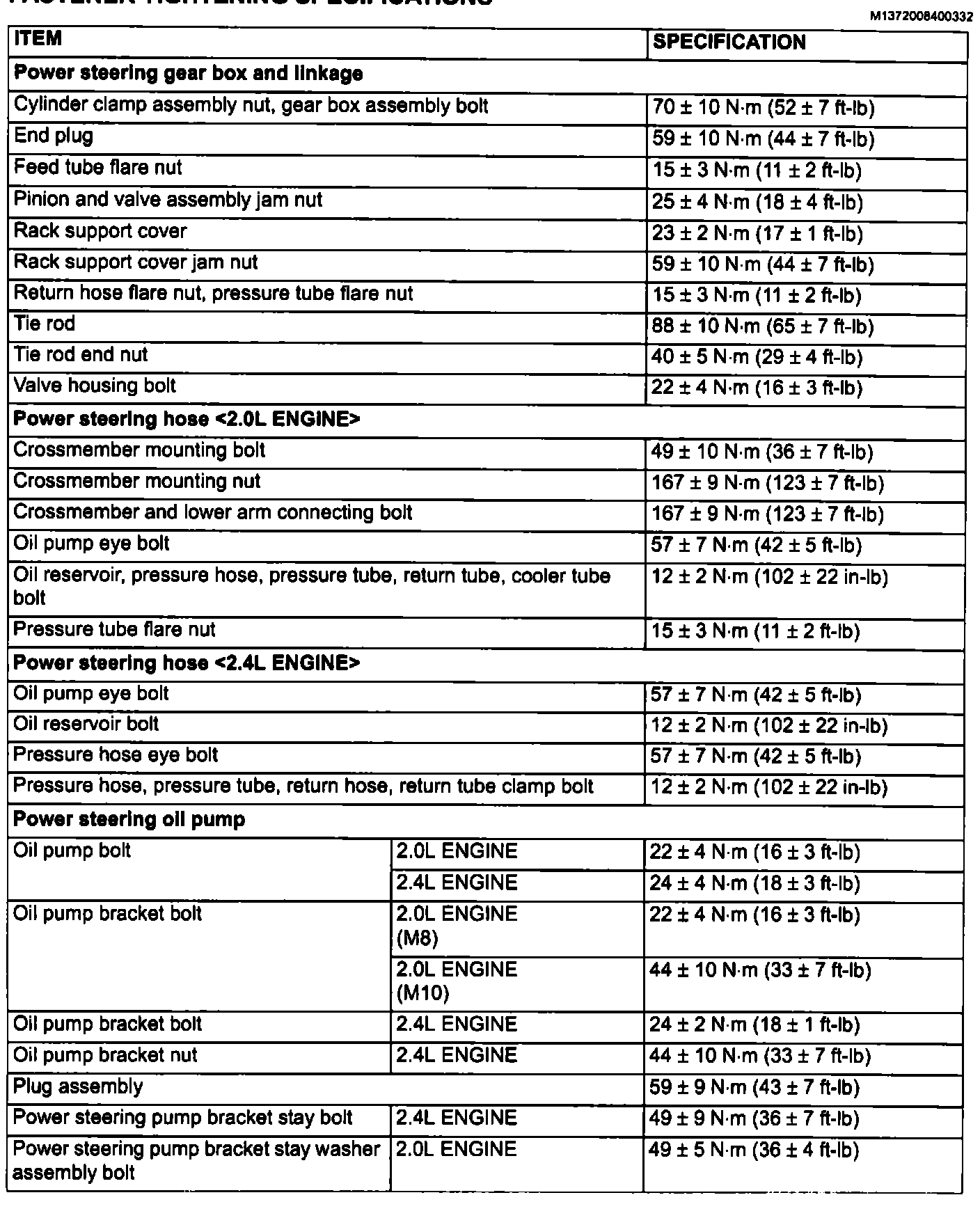 Power Steering Tightening Specifications