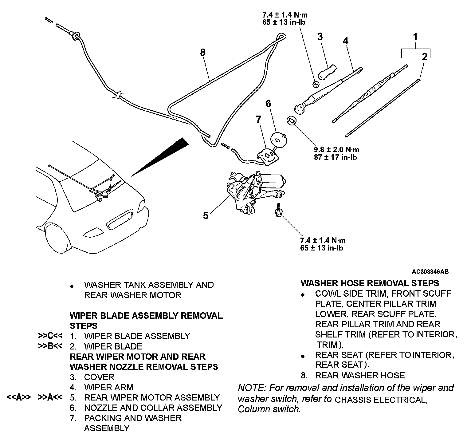 REAR WIPER AND WASHERREMOVAL AND INSTALLATION