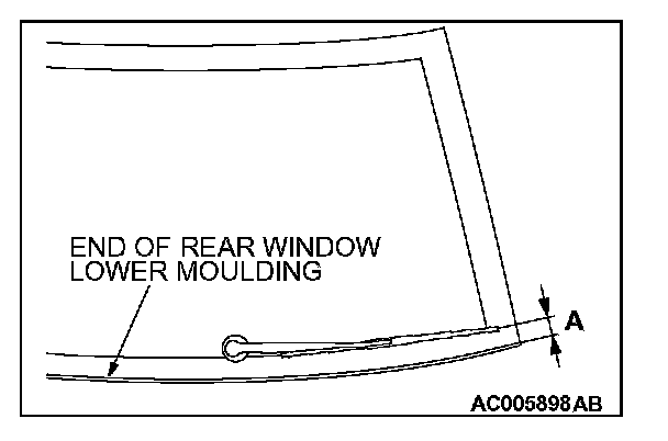 Before installing the rear wiper arm and blade assembly, operate the rear wiper motor so that the motor stops at the predetermined park position. Install the rear wipe arm and blade assembly and adjust the rear wiper blade position so that the blade end stops at the predetermined position (standard position).