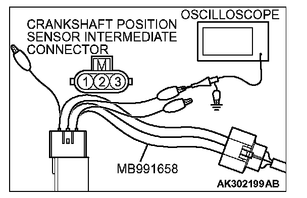 3. Disconnect the crankshaft position sensor intermediate connector, and connect the test harness special tool (MB991658) between the separated connector.