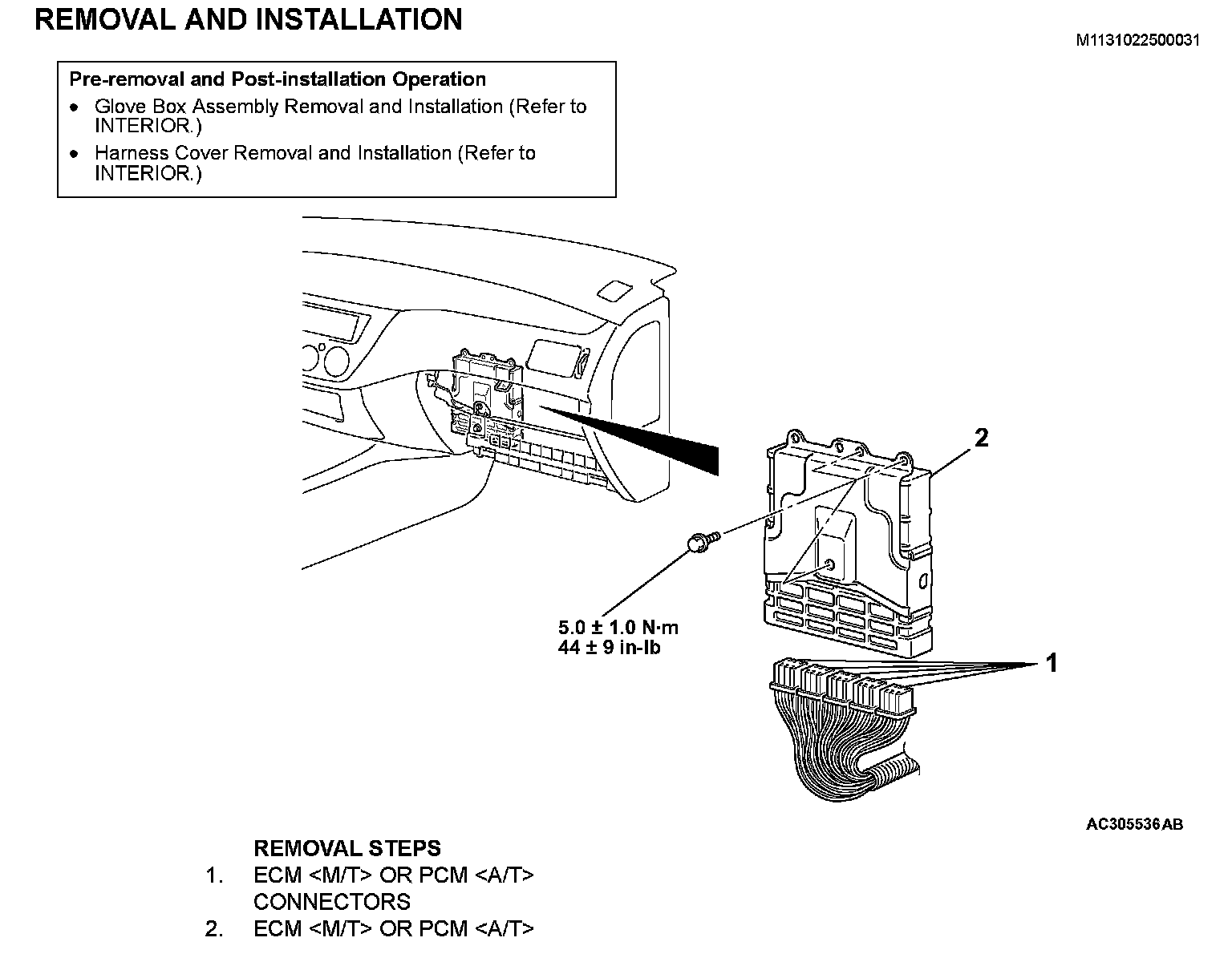 ^ PCM removal, installation, or replacement