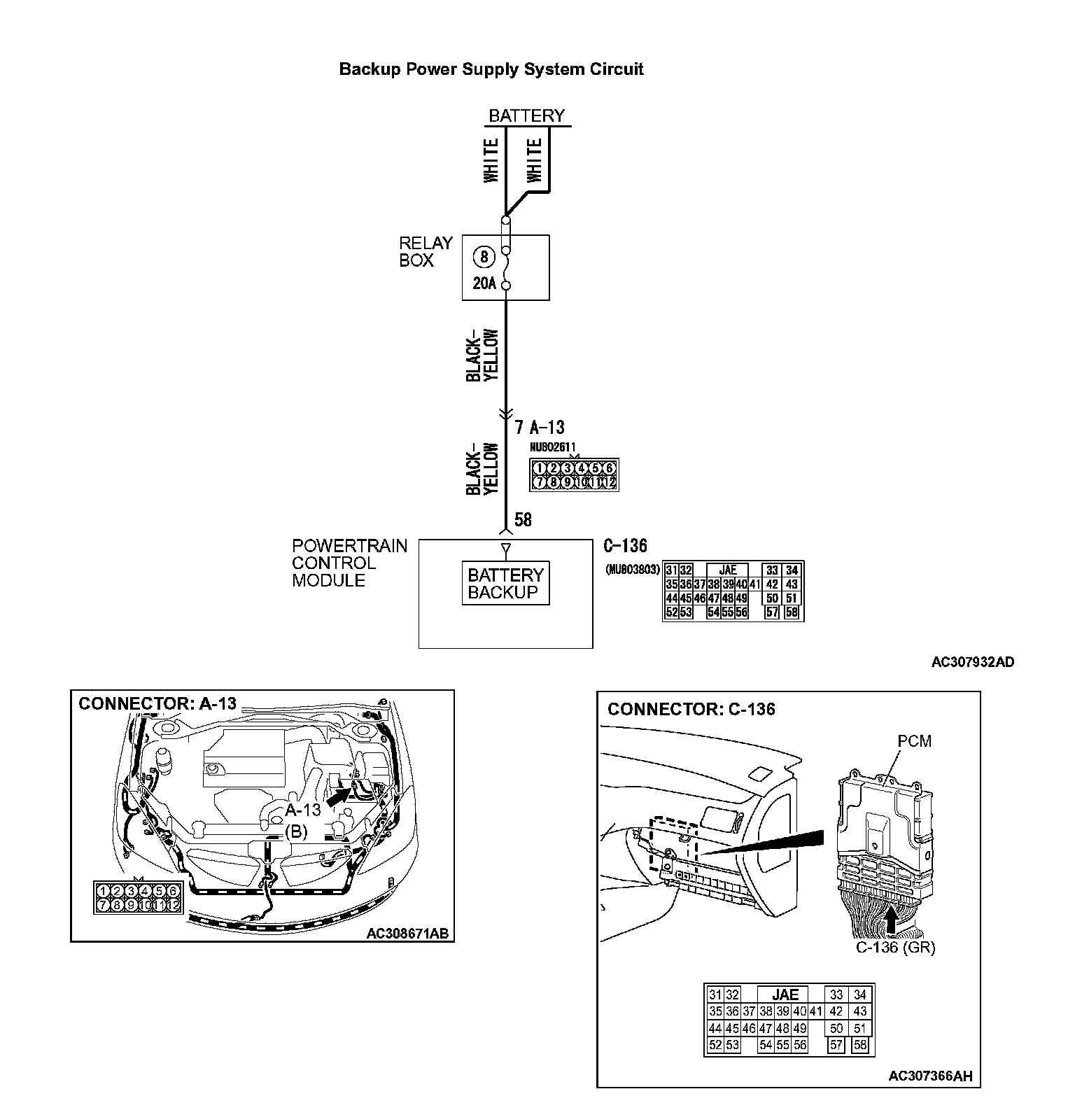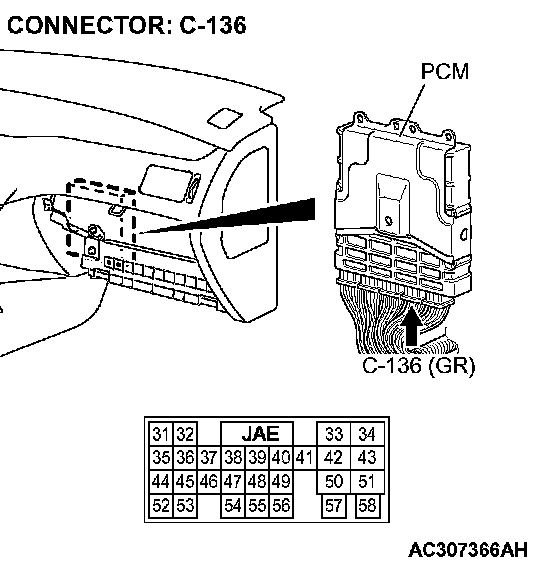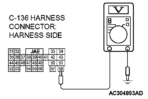 STEP 4. Check the harness for open circuit between PCM connector C-136 terminal 58 and battery.