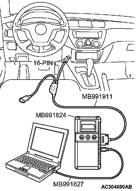 1. Connect scan tool MB991958 to the data link connector.