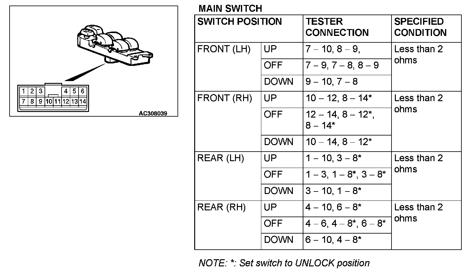 Power Window Switch: Testing and Inspection