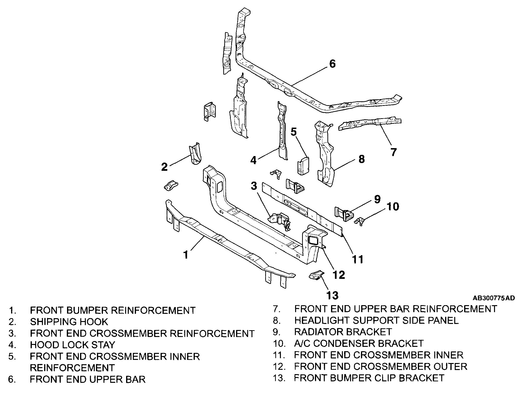 An uneven-thickness steel sheet* in which the sheet thickness is thicker on the shipping hook assembling side was employed for the front end crossmember outer to ensure rigidity of the shipping hook assembling area and to provide lightweightness.