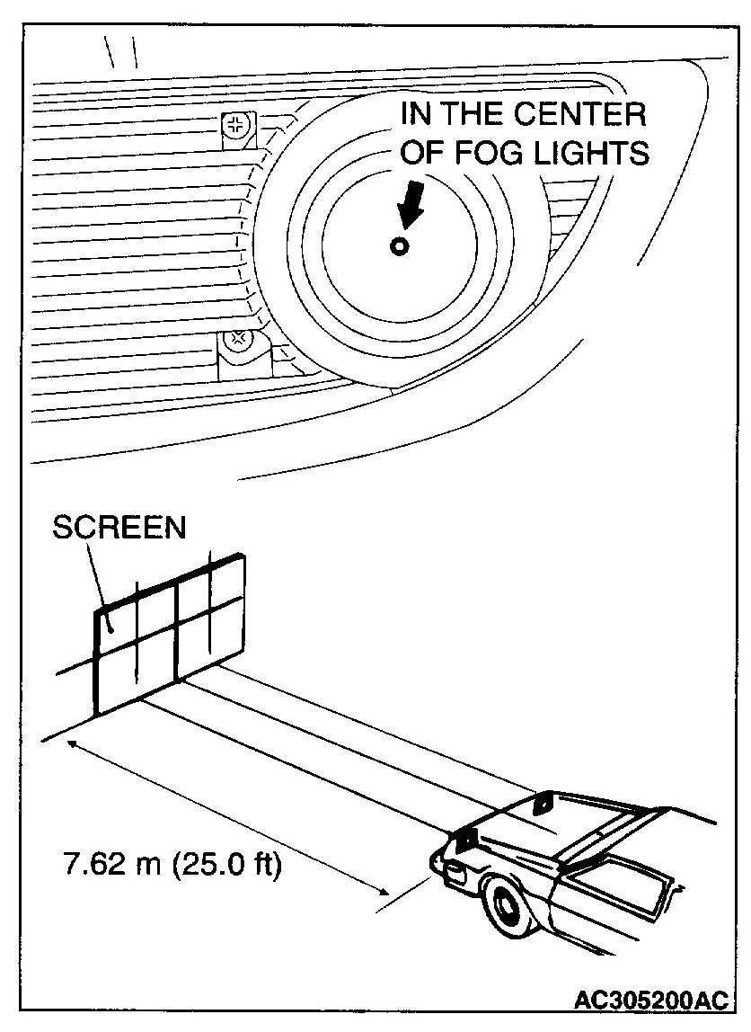 1. Place the screen so that it is directly opposite the center of the fog light at a distance of 7.62 m (25.0 feet), and turn on the fog lights.