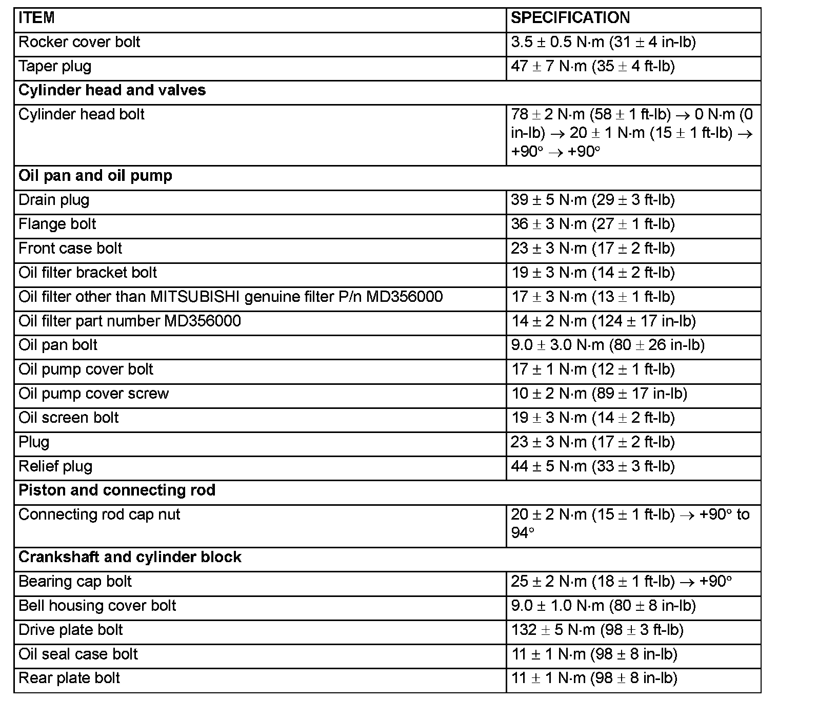 Torque Specifications