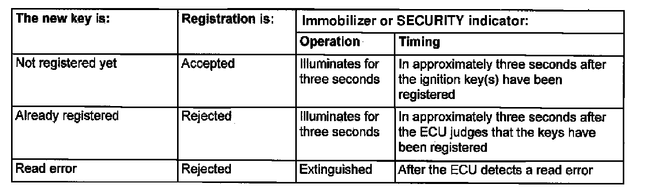 Immobilizer Key Registration Reference Table