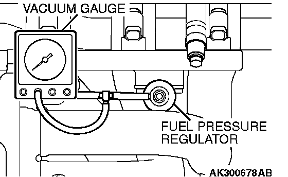 3. Attach a tee-fitting union to the vacuum hose between the fuel pressure regulator and the intake manifold plenum, and connect a vacuum gauge.