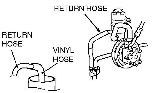 3. Connect a vinyl hose to the return hose, and drain the fluid into a container.