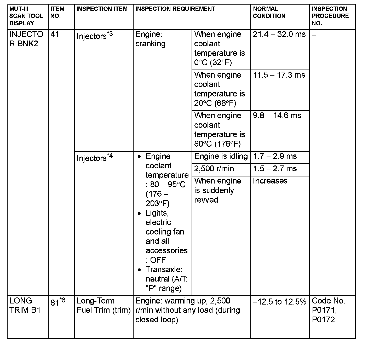 *4: In a new vehicle [driven approximately 500 km (311 mile) or less], the injector drive time is sometimes 10% longer than the standard time.