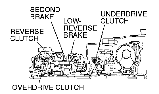 2. Blow 108 kPa (15 psi) compressed air into the each brake oil orifice and clutch oil orifice of the transaxle case, and check if each brake and each clutch piston move and air pressure is maintained.