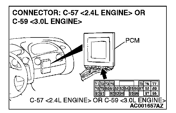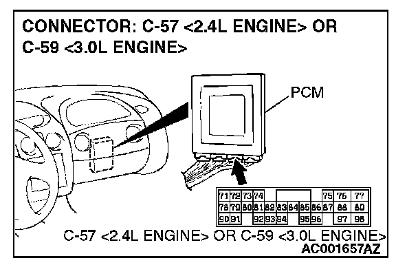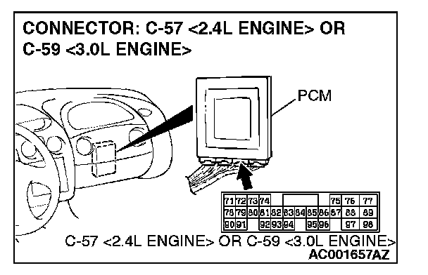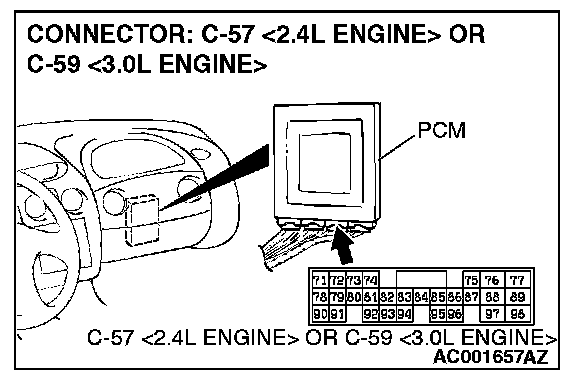 1. Do not disconnect connector C-57 <2.4L Engine> or C-59 <3.0L Engine>.