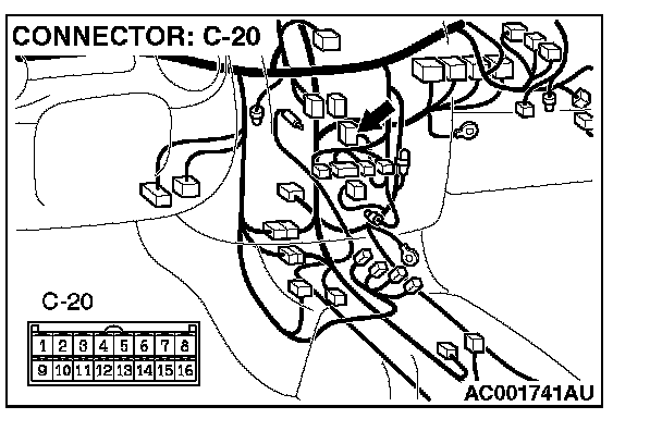 STEP 7. Check auto-cruise control-ECU connector C-20 at for looser, corroded or damaged terminals, or terminals pushed back in the connector.