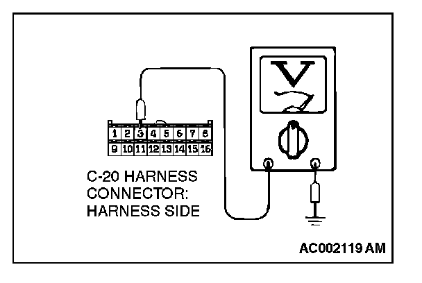 STEP 6. Measure the signal voltage at auto-cruise control-ECU connector C-20 by backprobing.