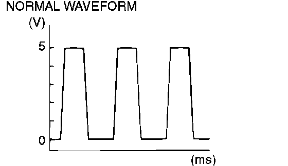 4. Check the vehicle speed signal waveform. The vehicle speed signal waveform should show a pattern similar to the illustration. The maximum value should be 4.8 volts and more and the minimum value 0.8 volt and less. The output waveform should not contain electrical noise
