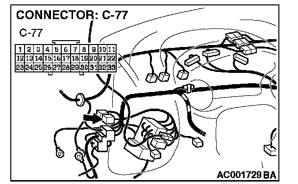 STEP 5. Check PCM connector C-57 <2.4L Engine> or C-59 <3.0L Engine>, intermediate connector C-28, joint connector C-77 and combination meter connector C-42 for loose, corroded or damaged terminals, or terminals pushed back in the connector.