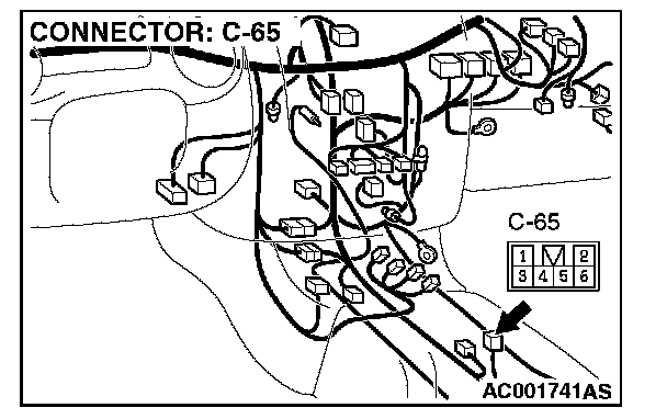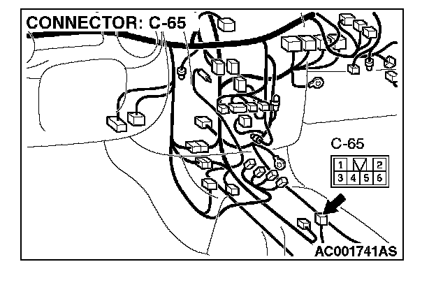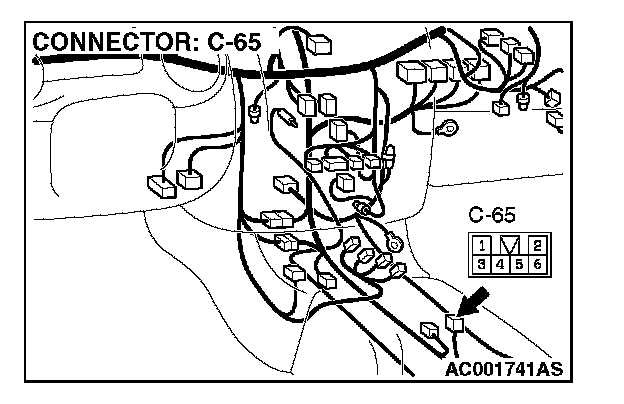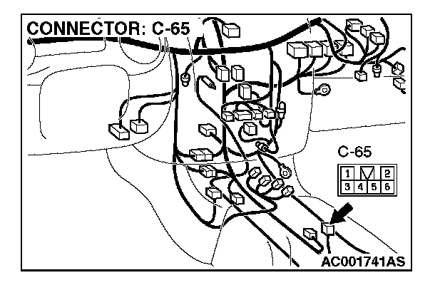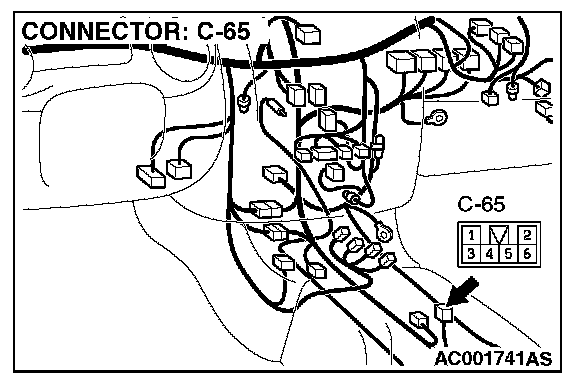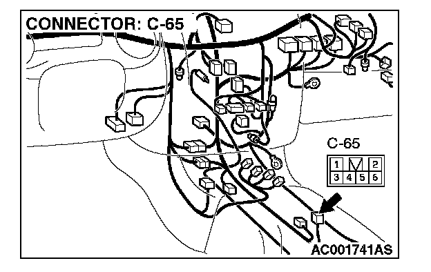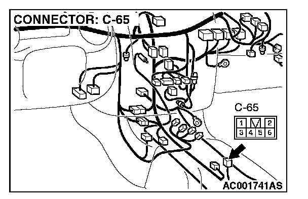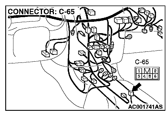 STEP 3. Check PCM connector C-61 <2.4L Engine> or C-63 <3.0L Engine> and shift switch assembly connector C-65 for looser, corroded or damaged terminals, or terminals pushed back in the connector.