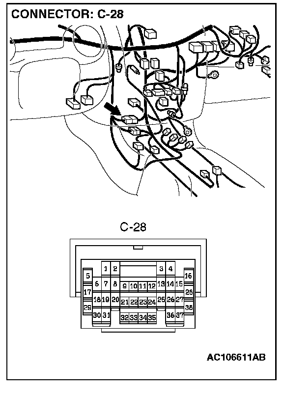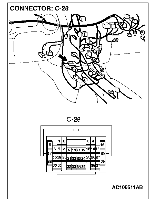 STEP 7. Check shift switch assembly connector C-65 and intermediate connector C-28 for looser, corroded or damaged terminals, or terminals pushed back in the connector.