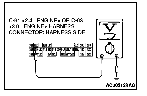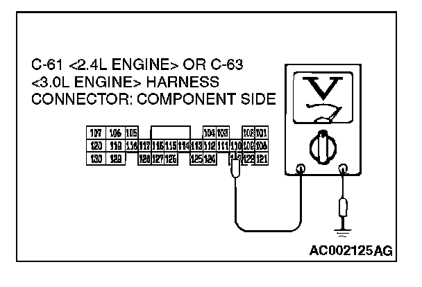 STEP 13. Measure the switch output voltage at PCM connector C-61 <2.4L Engine> or C-63 <3.0L Engine> by backprobing.