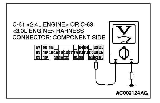 1. Disconnect connector C-61 <2.4L Engine> or C-63 <3.0L Engine> and measure at the harness side.