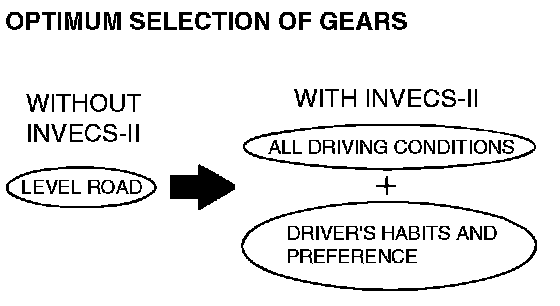 ^ INVECS-II features "Optimum Shift Control", which provides shift timing the average driver perceives to be the optimum timing under any road conditions. "Adaptive Shift Control" adjusts shift timing to match the driving habits and preferences of individual drivers.