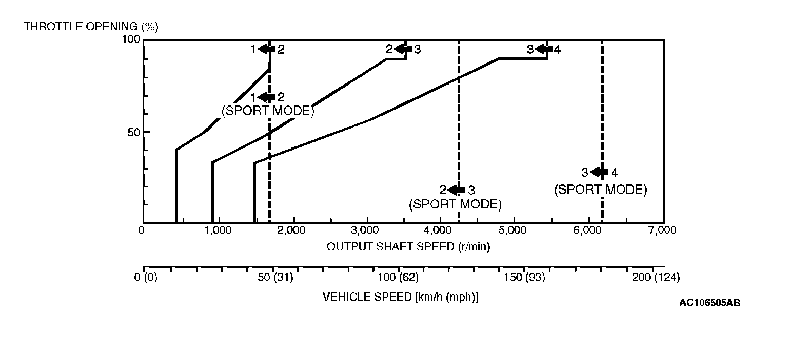 <3.0L ENGINE (VEHICLES WITH VARIABLE INDUCTION SYSTEM) > UPSHIFT PATTERN